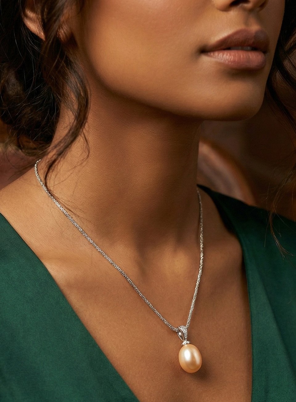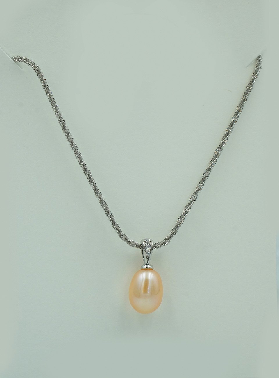 Add a touch of timeless sophistication to your jewelry collection with this stunning peach drop pearl necklace. Featuring a high-luster, natural-toned pearl suspended from a delicate silver-finish chain, this piece is designed to capture the light beautifully. Its minimalist yet elegant design makes it perfect for both daily wear and special occasions.