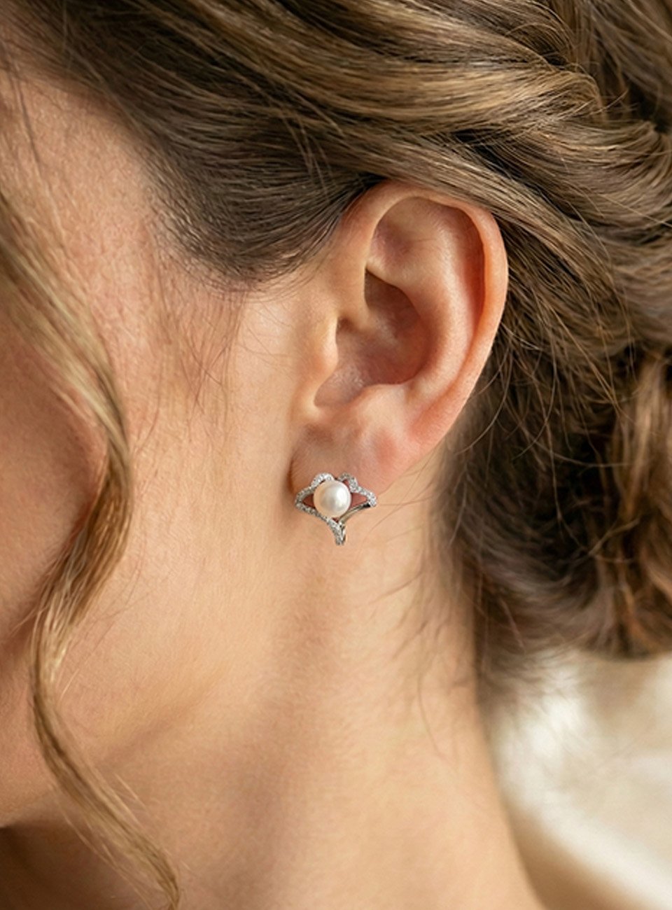 Elevate your jewelry collection with these exquisite pearl stud earrings. Featuring a unique ginkgo leaf design crafted with shimmering cubic zirconia accents, these earrings cradle a luminous round pearl at the center. Perfect for weddings, formal events, or adding a touch of luxury to your everyday style. Lightweight and comfortable for all-day wear.