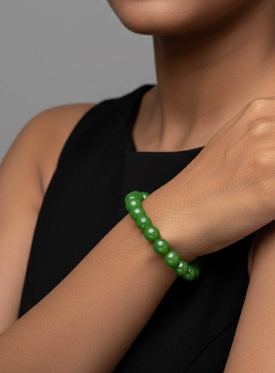 Add a touch of timeless sophistication to your wrist with this vibrant green beaded bracelet. Featuring high-polish, translucent beads that mimic the depth of emeralds, this piece offers a smooth, comfortable fit for daily wear or special occasions. Perfect for stacking or wearing alone as a bold statement.