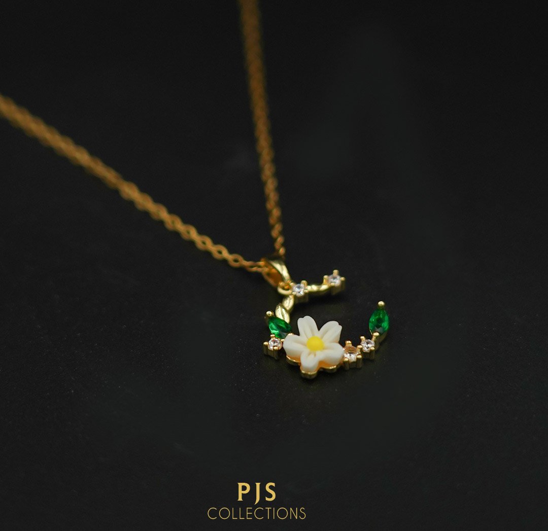 Celebrate personal elegance and the beauty of nature with this exquisite initial necklace. Featuring a beautifully curved letter pendant adorned with delicate floral and leaf accents, this piece adds a unique and personalized touch to any look. It's the perfect blend of sentiment, sparkle, and natural charm.