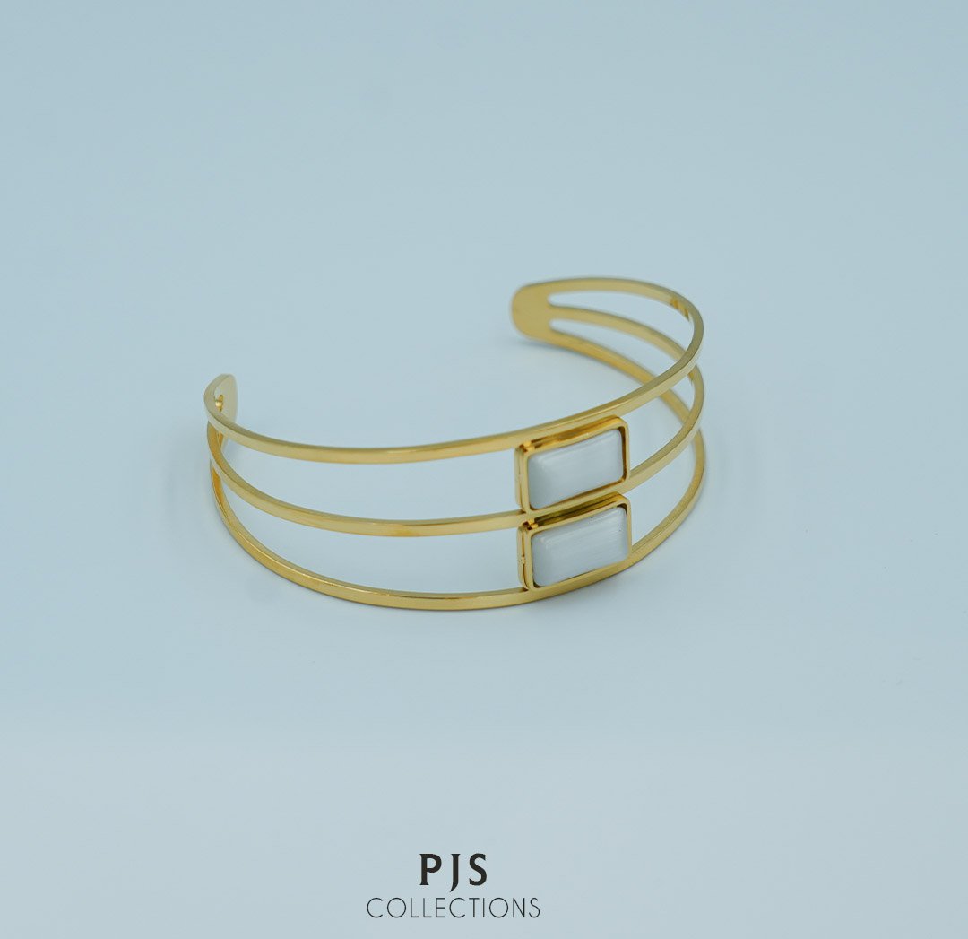 The clean lines and geometric setting give this piece a modern, minimalist, and elegant aesthetic. It's substantial enough to be worn as a statement piece but refined enough for everyday wear, easily transitioning from casual outfits to more formal evening attire.