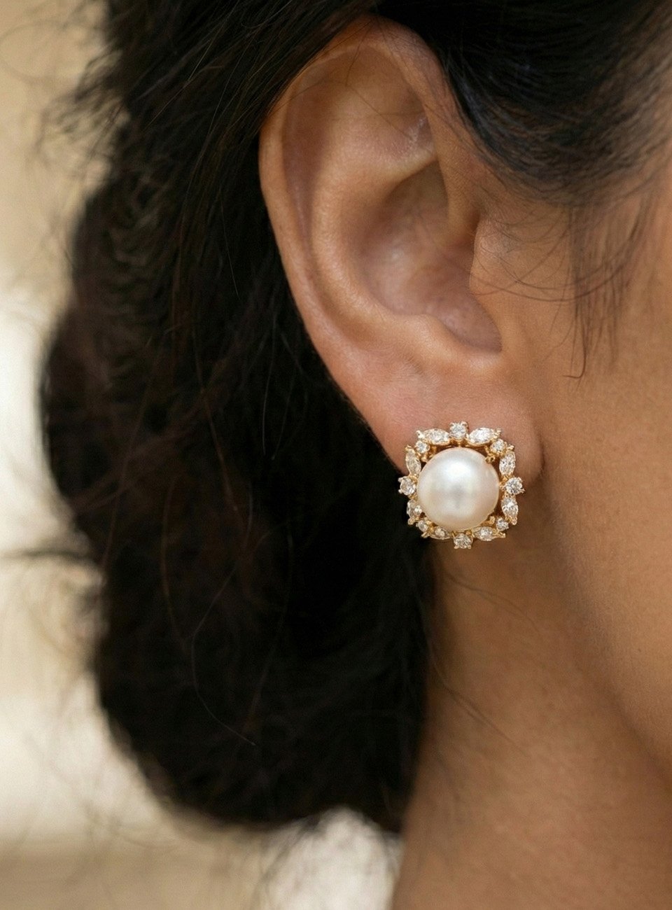 Add a touch of timeless grace to your jewelry collection with these exquisite pearl halo stud earrings. Each piece features a lustrous, creamy pearl center encircled by a brilliant halo of marquise and round-cut crystals that catch the light beautifully. Designed for the modern woman who loves vintage charm, these earrings are the perfect finishing touch for weddings, evening galas, or special celebrations.